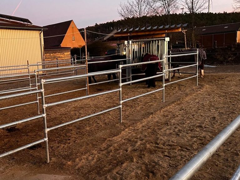 Wir legen Wert auf eine schonende Eingewöhnung und trennen neue Pferde die ersten Tage im Auslauf ab. Nach ein paar Tagen beschnuppern werden sie dann meist problemlos in die Herde integriert.